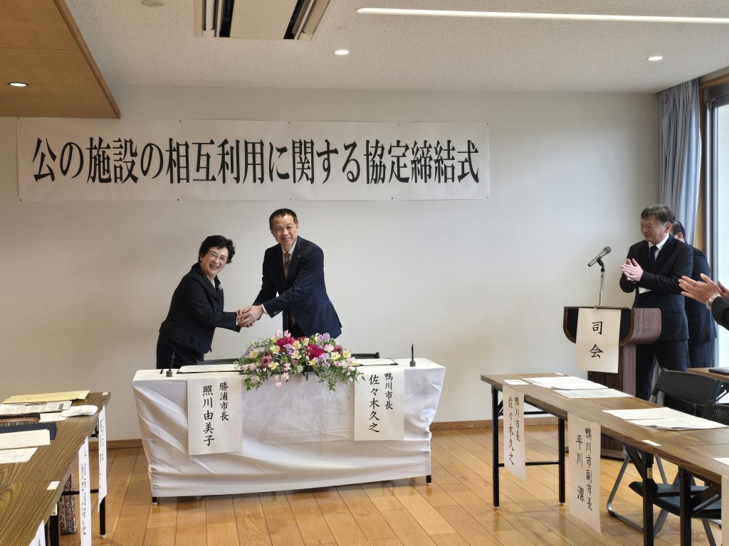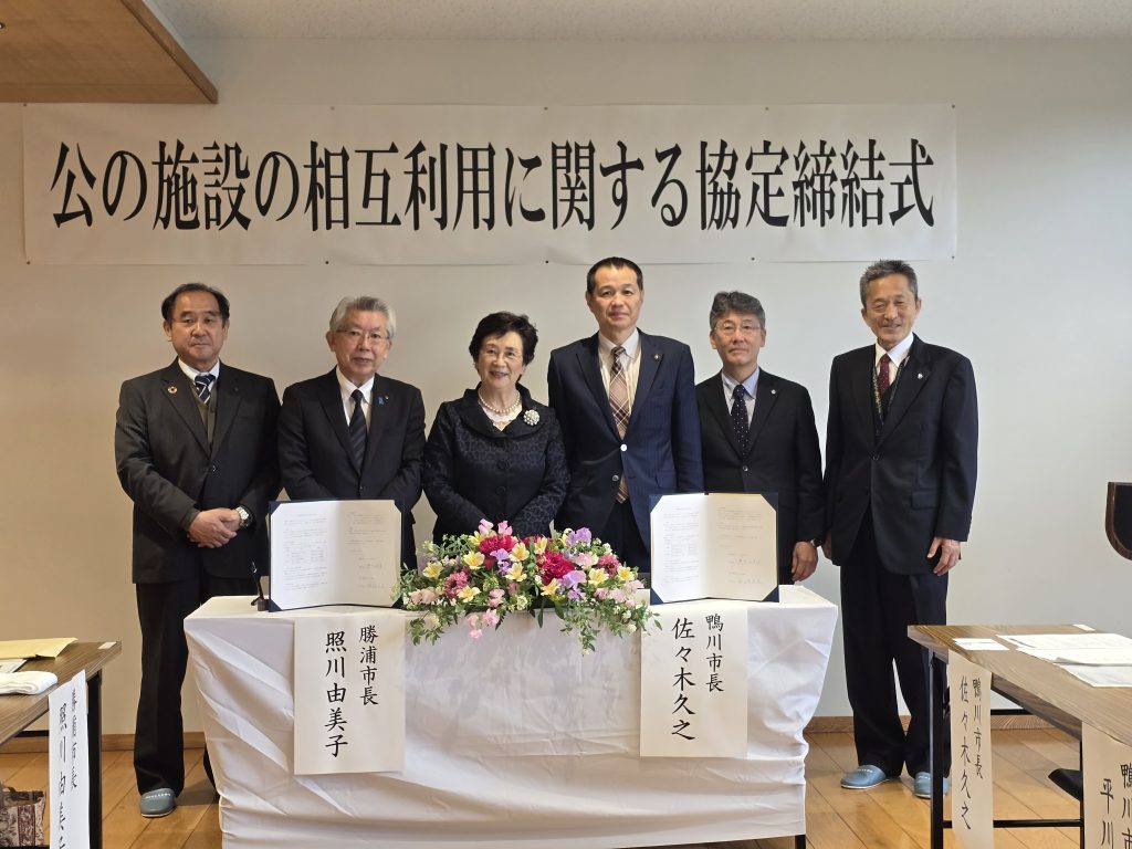 本日、鴨川市と勝浦市の間で「公の施設の相互利用に関する協定締結式」が行われました。
